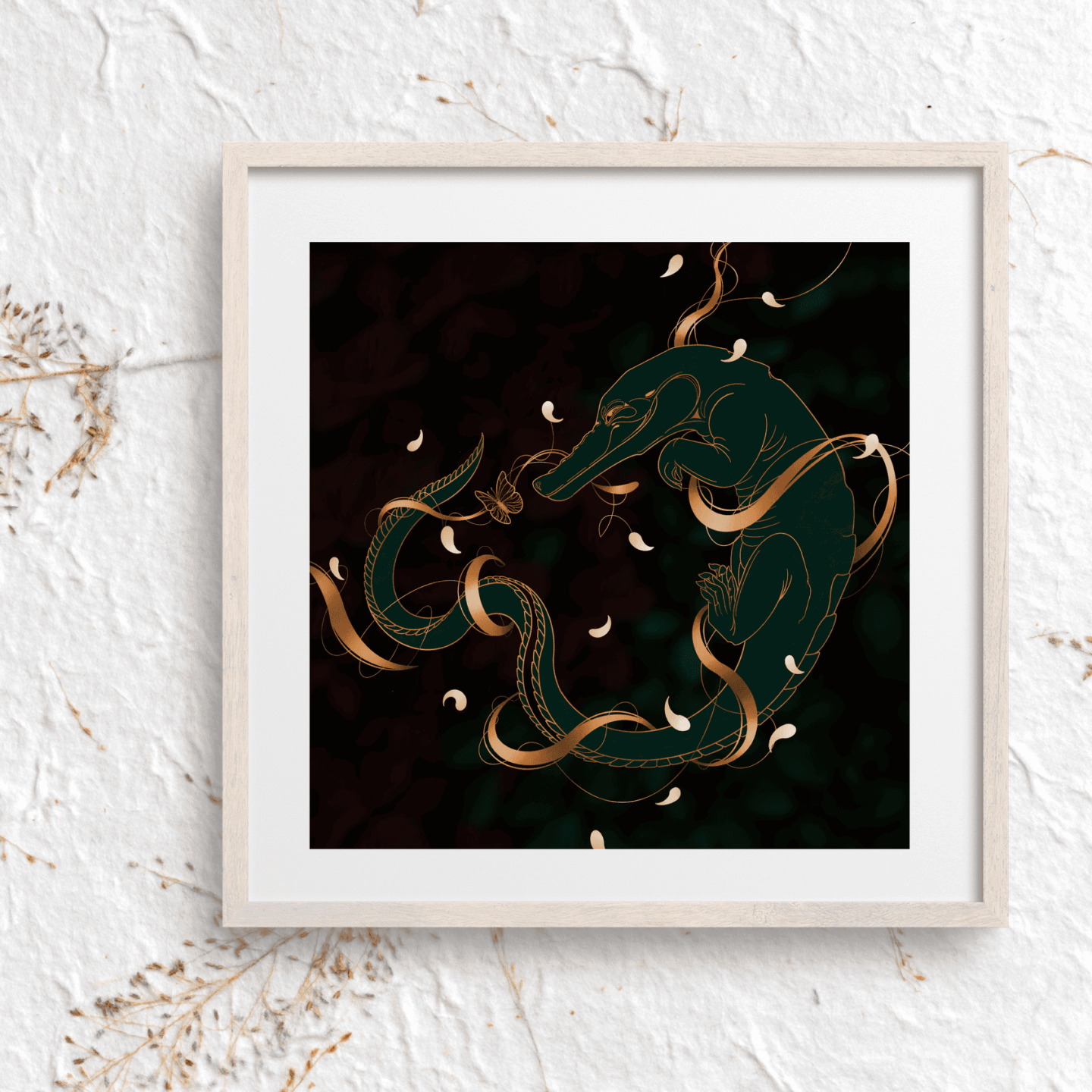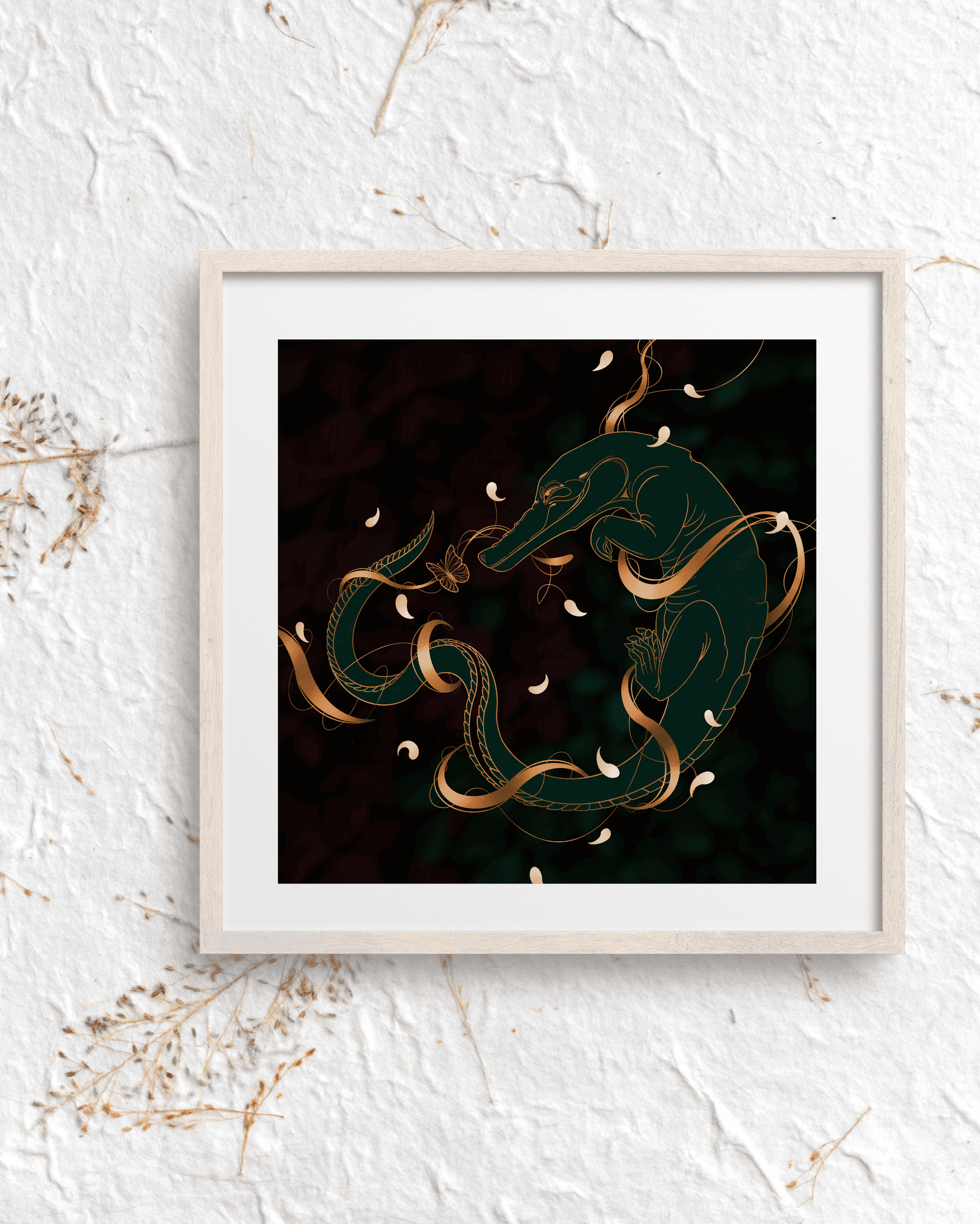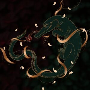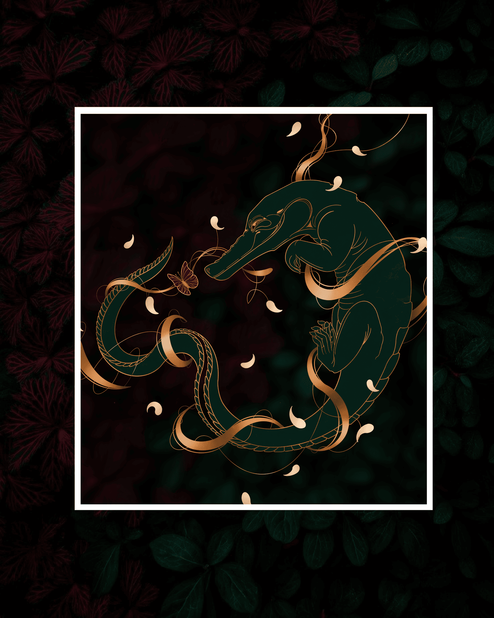 Le crocodile incarne la patience et la force sourde des profondeurs. Il représente l’ombre des marécages, la présence immuable qui traverse les siècles.